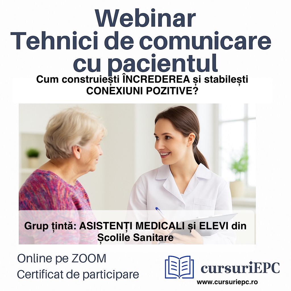 Program dedicat personalului ce interacționează cu pacienții și aparținătorii acestora! (medici, asistenți medicali, moașe, farmaciști, registratori medicali etc)